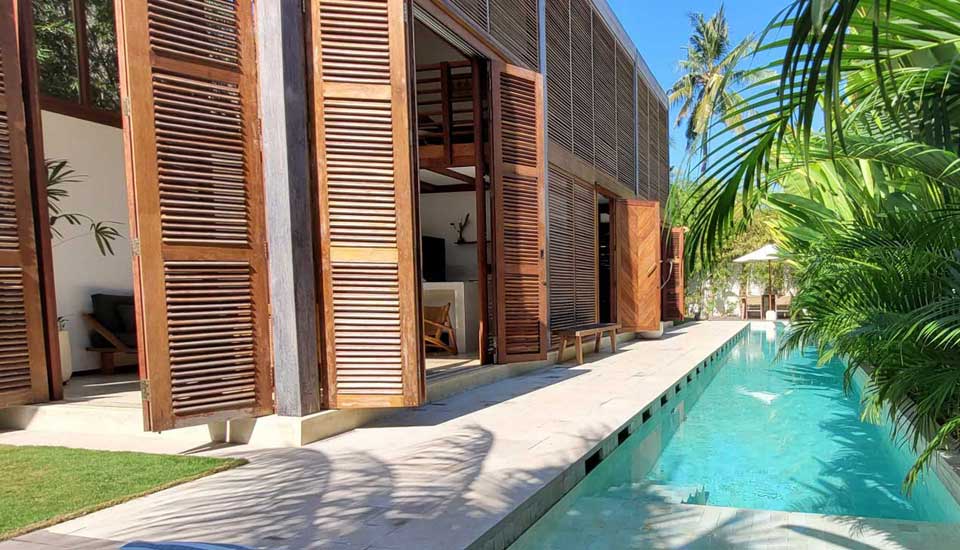 Villa Merbau is a luxury private pool villa offering a uniquely modern tropical experience. Located in the quiet, leafy north-west of Gili Air, the 2-bedroom villa, 18m pool and private garden have been exquisitely designed to be inviting and enchanting.